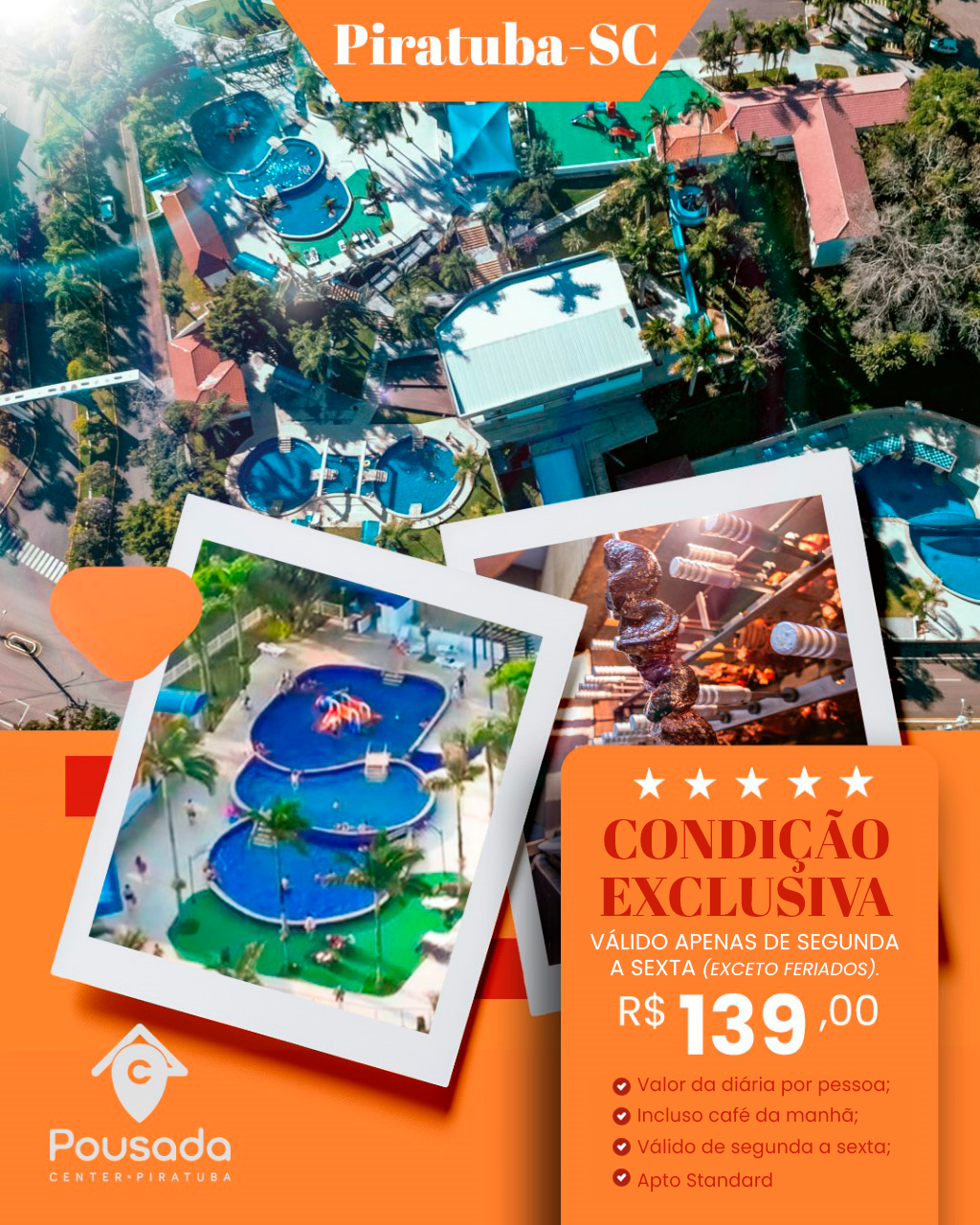 Venha relaxar e aproveitar tudo que a Pousada Center tem a oferecer por apenas R$ 139,00 a diária, com café da manhã incluso!